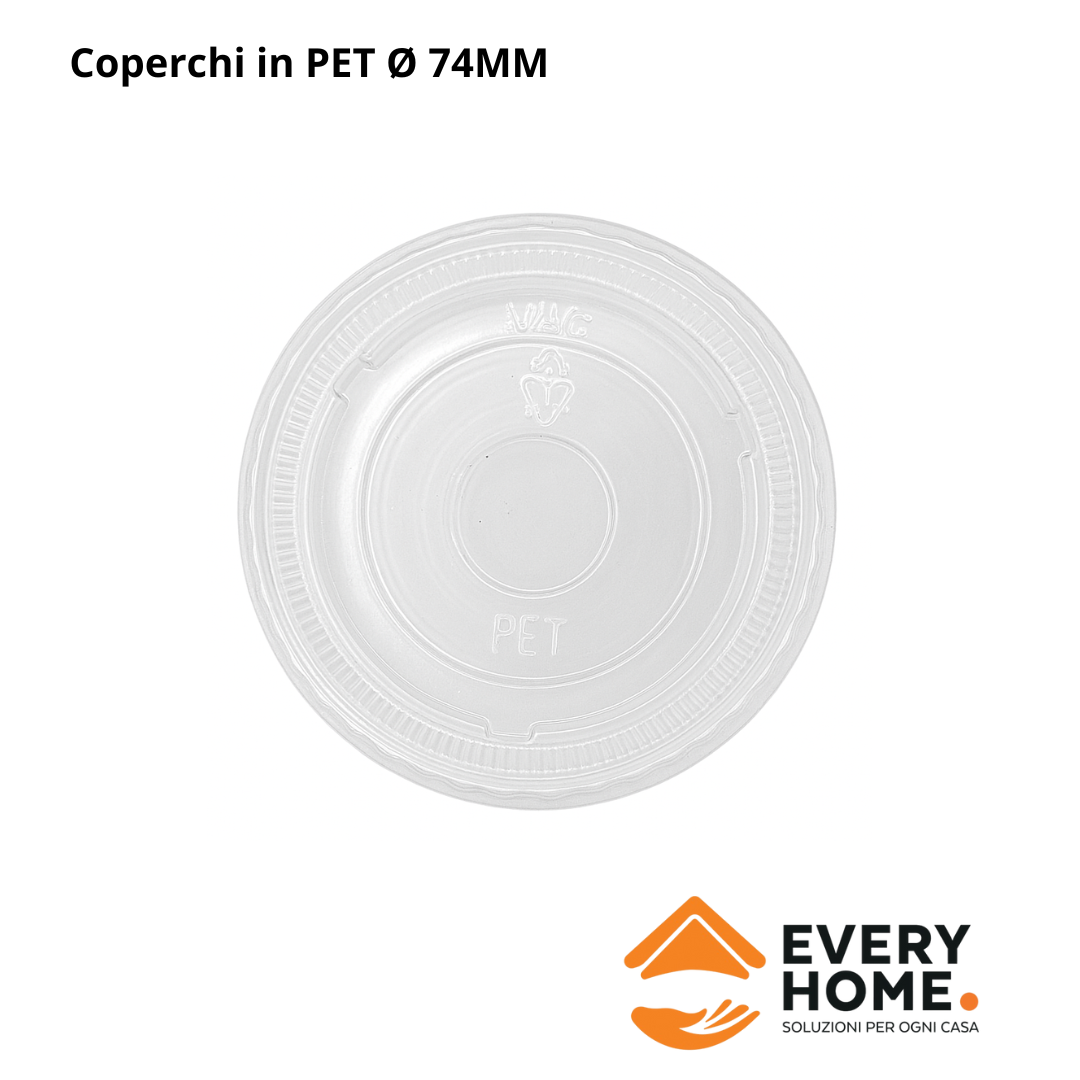 COPERCHI PET Ø 74MM CONF. 50 PZ Confezione da 50 coperchi in PET dal diametro di 74 mm, ideali per bicchieri e salsiere. Realizzati in plastica trasparente e resistente, offrono una chiusura sicura per il trasporto e la conservazion... (0.0/0) 1,10€