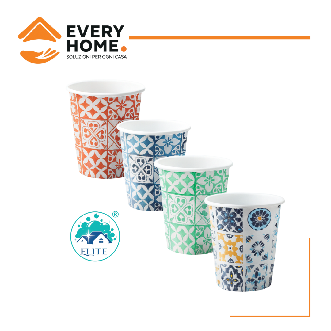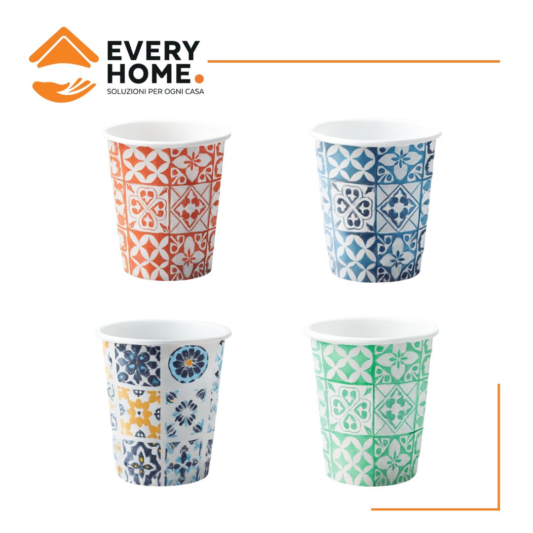 BICCHIERI CARTA 180 ML MAIOLICHE CONF.50 PZ Eleganti bicchieri in carta da 180 ml decorati con motivi ispirati alle maioliche di Vietri, in 4 varianti di colore assortite. Realizzati in cartoncino con rivestimento interno in PE idoneo al contat... (0.0/0) 1,15€