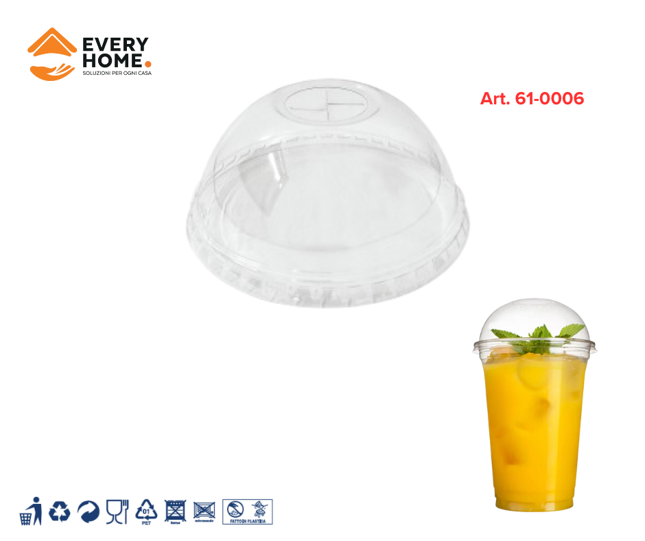 COPERCHI PET CUPOLA PER BICCHIERI DA 400 E 500 ML Coperchi in plastica PET con cupola e foro centrale per usare la cannuccia. Sono resistenti, trasparenti e hanno un diametro di 90 mm. Si abbinano a bicchieri da 400 e 500 ml. Ogni confezione contiene... (0.0/0) 2,10€