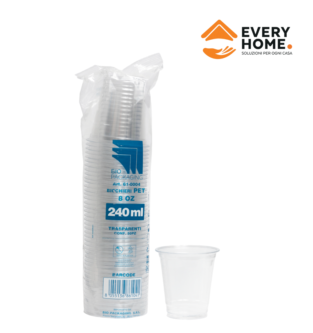 BICCHIERI PET 240ML/8OZ Bicchieri di plastica (PET) da 240 ml, 8 OZ e diametro di 78 mm adatti per degustare bevande fredde e a temperatura ambiente. Sono infrangibili, atossi e idonei al contatto alimentare. Li proponiamo i... (0.0/0) 2,45€