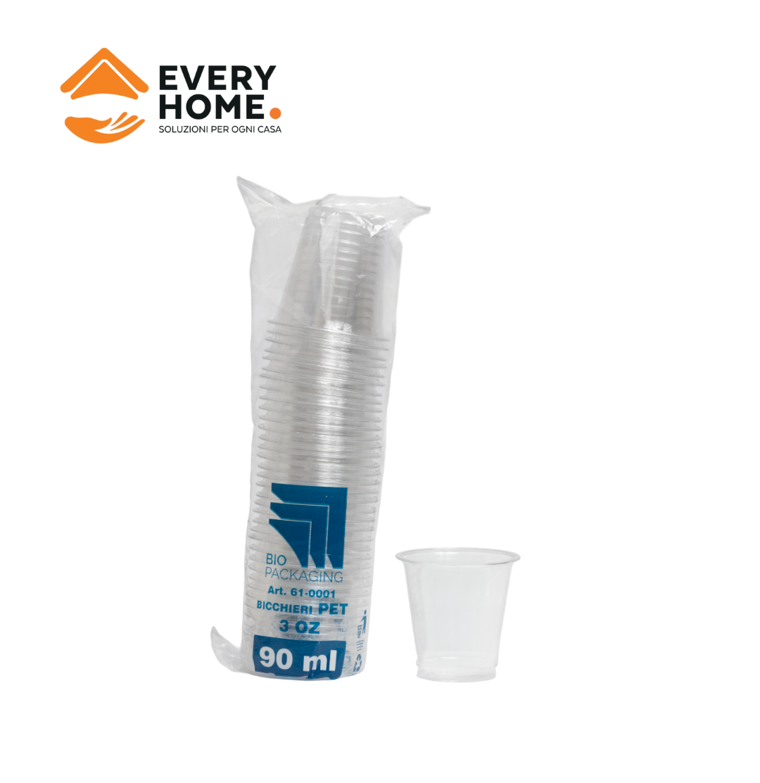 BICCHIERI PET 90ML/3OZ Bicchieri di plastica (PET) 90 ml (capacità 3 OZ e diametro 62 mm) realizzati con materiali di qualità adatti per la consumazione di bevande fredde e a temperatura ambiente. Sono leggeri... (0.0/0) 1,49€