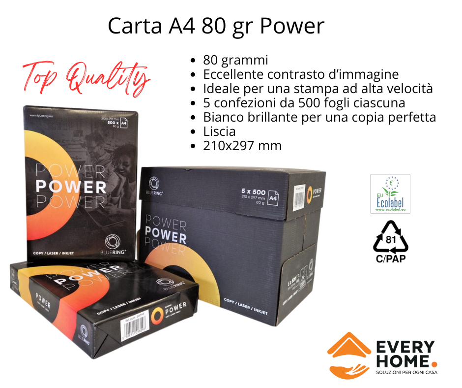 Promo CARTA A4 POWER 80 GR CARTONE DA 5 RISME 2500 FOGLI Carta A4 per fotocopiatrici e stampanti 80 gr/mq lucida e di colore bianco. Consente di velocizzare la stampa ed evita le inceppature. Il prezzo di vendita si riferisce a un cartone contenente 5 risme... (0.0/0) 3,40€