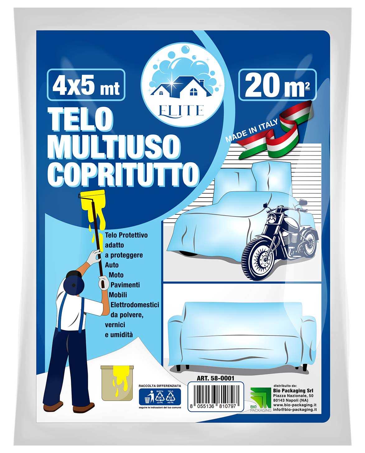 TELO COPRITUTTO TRASPARENTE 4X5 mt Telo copritutto multiuso 4x5 mt adatto per esigenze professionali e casalinghe. Protegge mobili, oggetti e superifici da polvere, schizzi di vernice e quant'altro. Pratico, resistente ed economico.&nb... (0.0/0) 0,85€